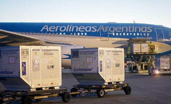 El medio millón de dosis arribó al Aeropuerto Internacional de Ezeiza a las 20,20 en el vuelo AR1063 de Aerolíneas Argentinas, que había partido esa misma madrugada desde la capital rusa.