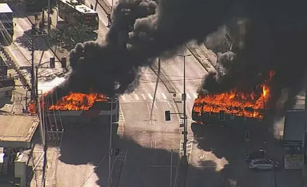 Milicias parapoliciales incendiaron este lunes al menos 35 colectivos en Río de Janeiro, Brasil, lo que obligó a suspender el transporte público y paralizó el tráfico, por una protesta luego de una operación policial en donde murió uno de sus miembros.